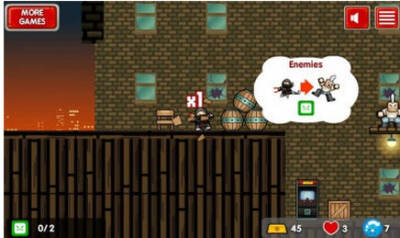 赏金忍者是一款有趣的动冒险类游戏,游戏中的主人公出生在忍者世家,从小耳濡目染,成为一名出色的忍者是他唯一的愿望。然而高昂的费用令他十分头疼,他必须勤工俭学让自己完成学业。正在他愁眉不展时,警方发布了通缉令,并且附有高额的悬赏奖金,只要能将在逃的犯罪嫌疑人统统抓获,就能继续自己的忍者梦了!有趣的地方在于人物的形象,小巧可爱,关卡设计的也是很丰富,如果你喜欢此类游戏的话就来尝试下吧!