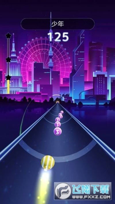滚动音符是一款节奏打点的音乐类游戏,这款游戏的画面采用3D特效,玩家可以感受视觉冲击。玩家只要拖动小球进行滚动撞击音符获得分数,玩家在游戏中可以解锁新的音乐曲目进行挑战。