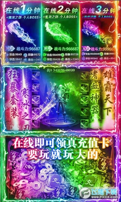 《狂斩之刃送无限真充》暴爽定制版火爆上线,每天在线领无限真充值卡!打BOSS必掉真充值卡!无门槛使用充值卡!一键战斗,轻松休闲无需爆肝,挂机就拿海量资源,福利多多金币元宝每天都送,轻松闯关升级无压力;时装定制,时尚造型DIY,翅膀坐骑华丽无限;帮盟对决跨服激战,与好友并肩激战三界,新版本新体验,邀您来斩!