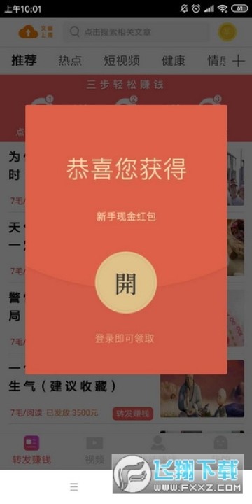 登陆即送1元,文章阅读单价0.7元,支持自己上传文章;