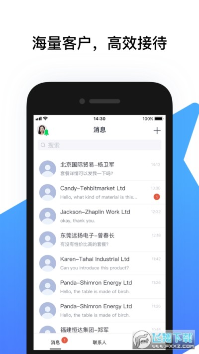 企业成员可随时随地查找、联系企业内部任何一个人,使管理真正实现扁平化;云端存储通讯录,更换设备也能看到!寻找联系人更方便;