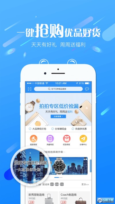 【商品丰富,应有尽有】 涵盖热门商品:手机、平板电脑、3C数码、家用电器要什么有什么,低至一元竞拍,购物新体验!