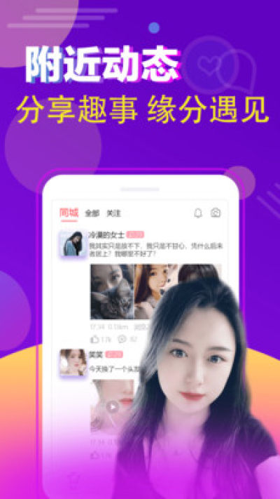 -动态广场:分享生活瞬间,发现同城有趣的人!秀出真我,寻找真正志同道合的人,轻松聊天,与缘分女生互动 。