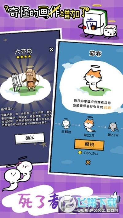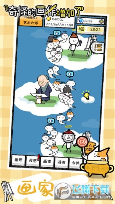 一款佛系挂机游戏,世界各种名画家去世后在天堂又被重新召唤回来继续画画,也是比较惨了,名符其实的灵魂画师。
