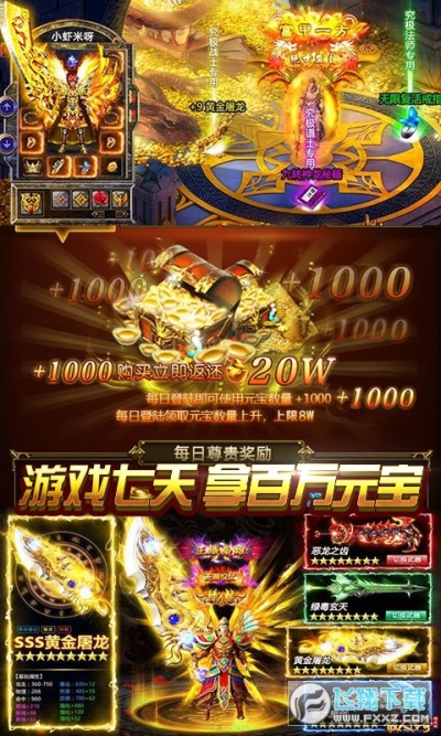 《神戒神兽至尊版》游戏上线在“百万福利中”创角七天领取百万元宝,再领取每日签到中的海量元宝,累计无限元宝,疯狂购买各种极品道具极品材料!游戏中提供3职业让玩家选择,最后开通三职业。可通过提升等级,解锁游戏内容,养成包括:装备,强化,技能,羽翼等;可以通关副本,击杀boss,遭遇pk等;和其他玩家一起创建帮会,参加帮会活动。