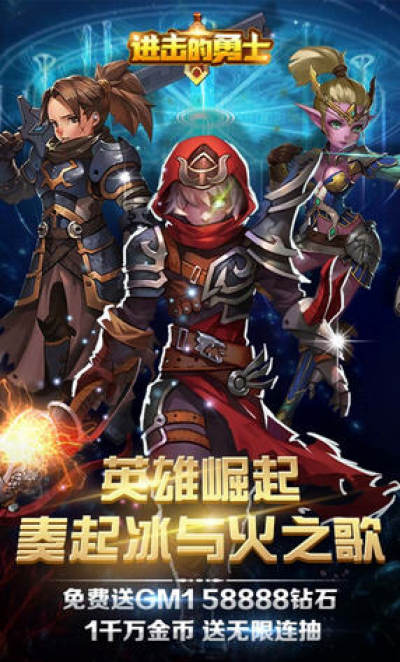 战神崛起 奏起冰与火之歌!爆款史诗3D魔幻点触连斩卡牌MMORPG手游,首次上线 !3D场景,组队探宝攻城,回归MMO本源!六宫格布阵、大招集火,重新定义回合制!六大血统、四大职业,带你走进不一样的魔幻世界!多种多样的英雄卡牌、绝无仅有的史诗幻兽,让你在联盟中更加拉轰夺目!手搓连招特色战斗!壕华活动倾情助阵!萌妹一路陪玩!还在等什么,征战天堂神域,勇夺末日王座,一切尽在《进击的勇士》!