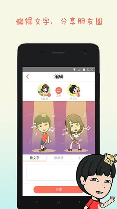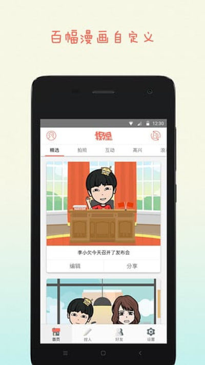 2.拍照或动手几步创造个性漫画形象,人物自由植入千余幅逗趣漫画场景中!