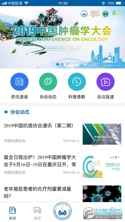 中国抗癌协会app是中国抗癌协会会员APP,这款软件是集合了新闻、会议、资源等等各方面的服务为一体打造的,在中国抗癌协会app上用户可以查看各种最新的行业新闻信息,还有关于会议的信息等等!
