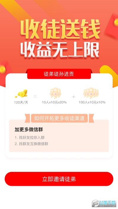 邀请好友奖励15元+永久30%一级徒弟提成,永久20%二级徒弟提成。