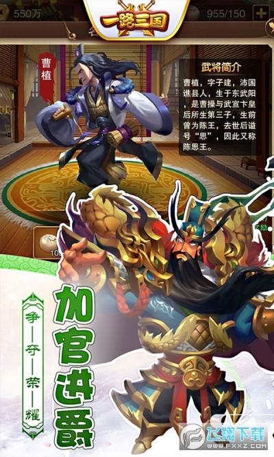 2020年最好玩的三国题材卡牌大作《一路三国》即将火热来袭! 国内一线画师精心打磨,原创画风极致展现奇妙瑰丽的乱世江山! 超过六十位传奇武将,五子良将、卧龙凤雏为我所用。 超过十余种有趣玩法,皇城争锋、加官进爵争夺荣耀。 超过数百种华丽特效,超高画质、激燃战斗视觉盛宴。 数万字的全英雄配音,顶级声优、倾情演绎经典角色。 带来绝不重复的快乐,屯田经营、开拓城池自由选择。
