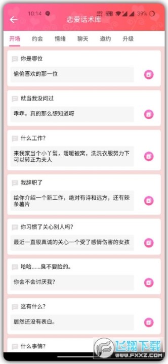 从搭讪计划、初建关系、风趣话题、走心话题、建立情感、约会流程、亲密接触到确定关系,海量文章教你轻松学会聊天,让你快速脱单。