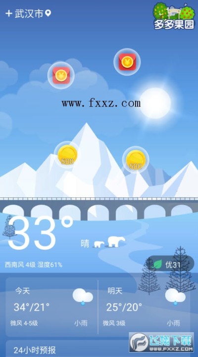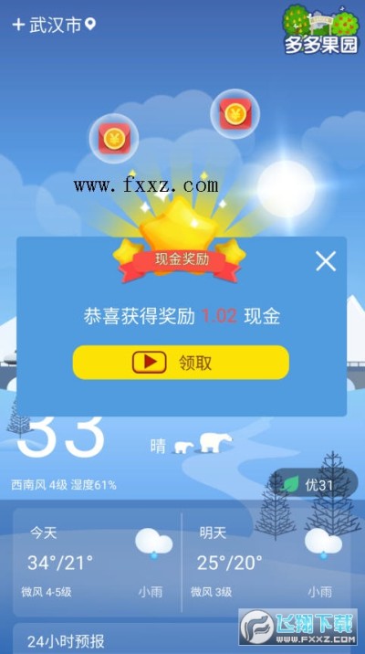 果园天气极速版app是一款看天气赚红包的手机app,用户只要在线根据要求合成种子,每升一级就能领取红包,而且在果园天气极速版上用户还有新人专享红包,支持微信支付宝直接提现!