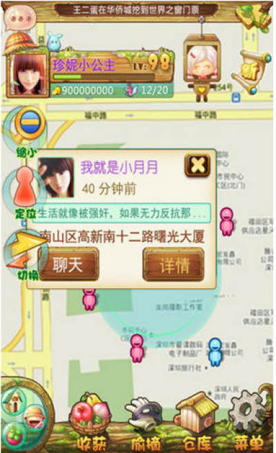 水果派对是一款集农场经营和社交互动为一体的经营类游戏,游戏拥有独特的LBS地理位置服务系统,让玩家能够轻松简单的与近在咫尺的其他玩家聊天互动,说不定还能成为线下的好朋友哦。