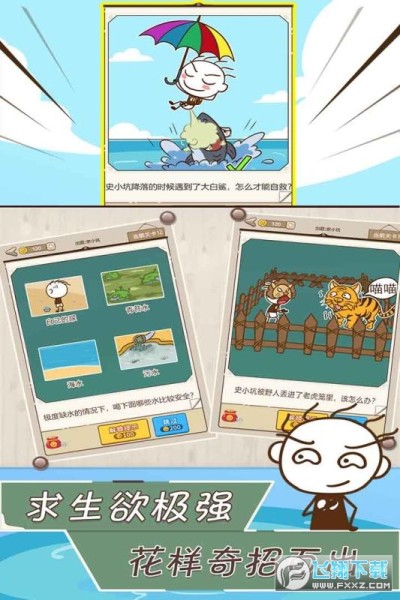 趣味性十足的冒险闯关玩法,要帮助史小坑顺利的从游戏中离开,解决游戏中更多的难题,来帮助他逃生。