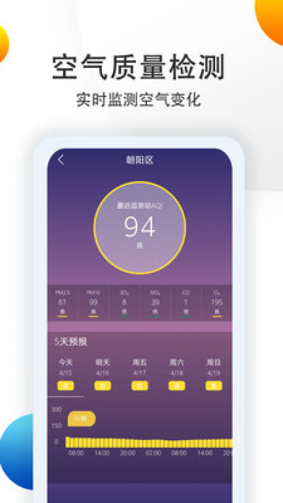 4、全面的天气指数:温度、天气状况、风向、湿度、空气质量、穿衣指数、15日预报……