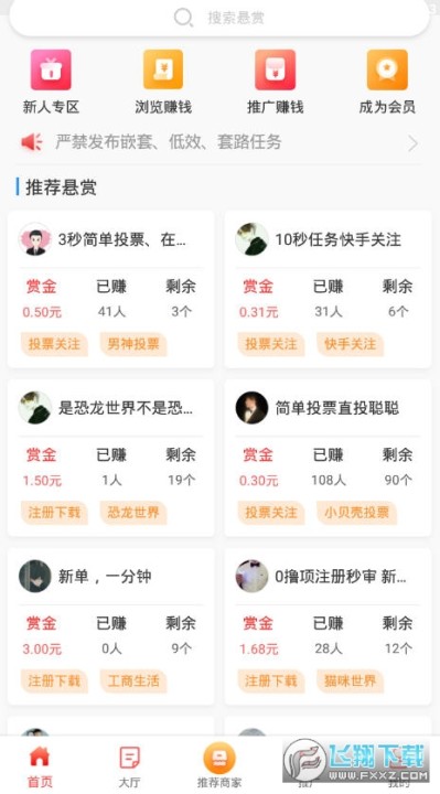 悬赏联盟真的靠谱吗?新手怎么样赚钱?悬赏联盟app是一个让你在家就能兼职赚钱的新平台,每天大量任务更新,不少任务主在这里发布任务,而用户既可以做任务赚钱,也可以发布任务,目前发布是不需要手续费的,并且新人福利多,其中就有0.3元秒提。