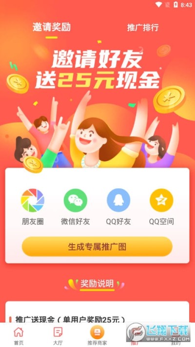 2、推广新用户可赚25元,还有12%的任务提成+35%的道具分成