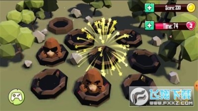 2、经典的场景设计,添加现代元素进去,让我们体会到即新颖又复古的打地鼠游戏。