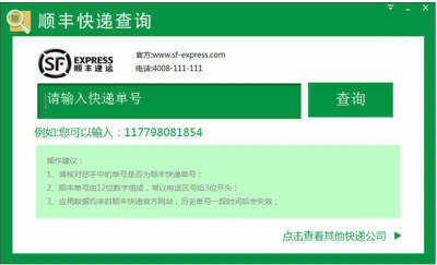顺丰快递单号查询工具是一款功能强大的专门针对顺丰快递的快递单号查询工具。顺丰快递单号查询软件提供准确、实时、快速的顺丰快递单号查询,让属于你的快递了如指掌。
