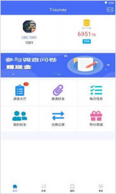 tcsurvey是一款通过市场调查赚钱的手机软件,这款软件的赚钱方式很简单,用户只需要能把这款软件的问卷调查填写完成就能获得收益,用户还可以邀请好友或者别人填写,这样就能获得更多的收益!