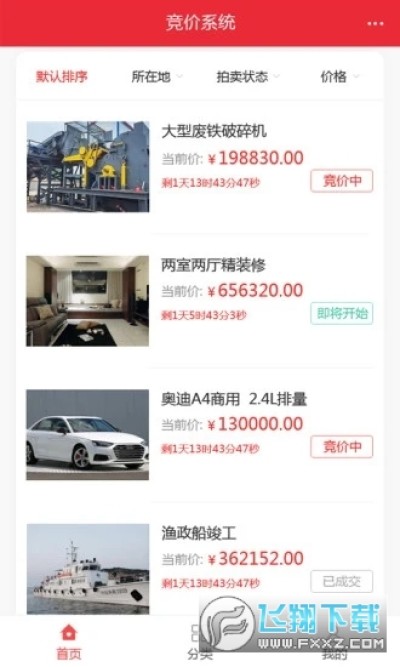 卖家用户在本平台上发布各类二手资产,买家用户通过自己的账号登录本平台,可以根据分类、地区等条件,浏览并报名参与各类二手资产的竞买。