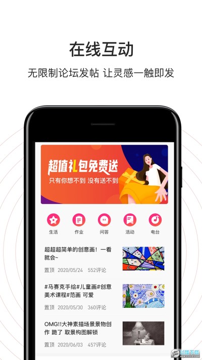 美术君app是专为艺考生和美术爱好者打造的社区型学习平台,通过社区模式进行交流学习,让大家可以根据自己的需求和爱好方向去寻找灵感、好友亦或是导师,并且支持画图设计哦,有需要就下载美术君app体验吧。