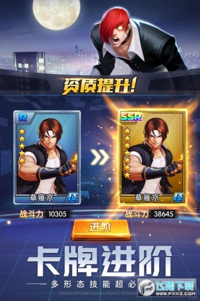 拳皇卡牌手游(拳魂觉醒)手游是一款大型的拳皇主题系列卡牌竞技手游,游戏国服安卓版本全新上线,海量的拳皇格斗家英雄等你收集,上线即可获取满星爆衣不知火舞!对游戏感兴趣的话不妨点击下载尝试吧!