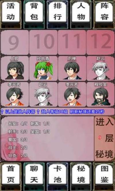 1.与英雄们组队冒险,数百名历史名将等着你招募,逐渐扩大自己的阵营。