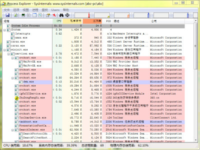 Process Explorer是一款非常好用的进程管理工具。Process Explorer的显示有两个子窗口所组成,窗口上方会显示出当前活跃的程序进程,包括它们的详细描述,窗口下方则会显示出通过资源管理器模式运行的应用程序的相关信息,以及它们所调用的DLL和打开的句柄,该版本可以运行在windows NT/2K/XP/2003系统平台。