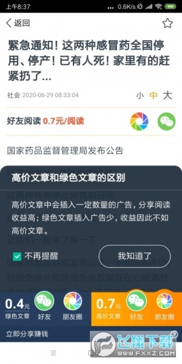 转发文章单价0.7元,5元即可提现