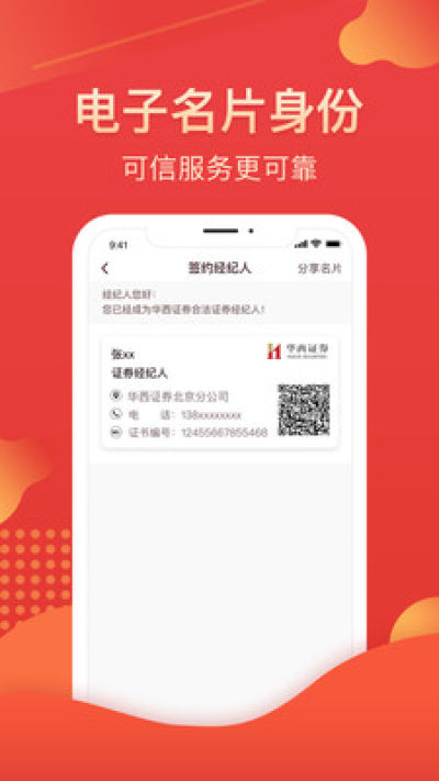 客户通过扫描证券经纪人电子名片即可查看证券经纪人的合法身份,保证服务可靠。