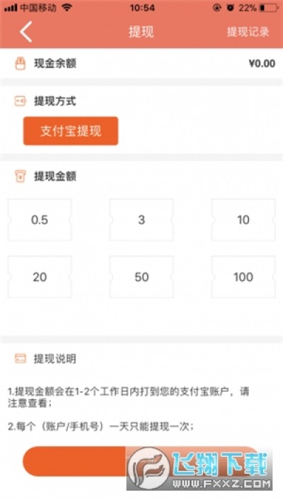 1、满0.5元即可提现到支付宝,单次最高100元提现