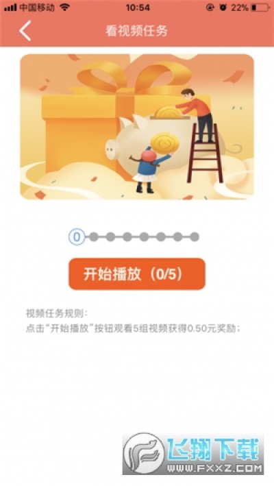 2、看视频任务:点击“开始播放”按钮观看5组视频获得0.5元奖励