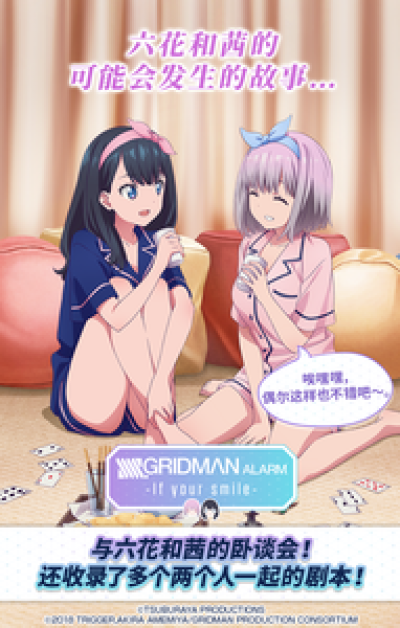 GRIDMAN闹钟中文app上线了,这款软件是根据人气动画的两位女主角打造的主题闹钟哦,在GRIDMAN ALARM app上还有宝多六花跟新条茜的高清壁纸哦,这里还提供了超多的语音素材,快来下载试试吧!