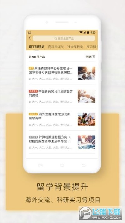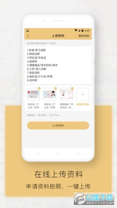 出国全程通app是一款专业的出国留学综合服务平台,致力于协助想要出国留学的用户申请留学,向用户教给一些出国留学必须掌握的专业知识內容;服务平台提供申请办理递交作用,用户需要将自身的个人信息、文凭情况及其语言考试成绩等信息内容填好到申请办理,那样专业的留学生才能协助你分析什么学校可以报考入学,另外也便捷替你提交就读申请。