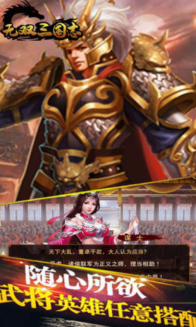 《无双三国志》是一款全新的战争策略型游戏。不局限于一般战争策略游戏中的“胜者为王”,完全突破了战争策略的瓶颈,让玩家“谋一世英明,定万里江山,天下谁与争锋。