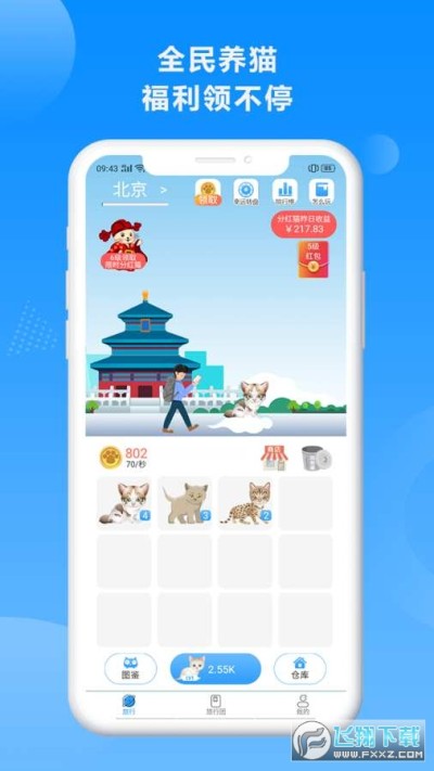 奇喵旅行app是一个养宠物旅行赚钱的新平台,以养猫为特色,以分红为亮点,通过不断的合成升级猫猫的等级,以此获得各种收益,包括分红哦,进度越快,获得分红猫的速度越快,赶快下载奇喵旅行app试试吧。