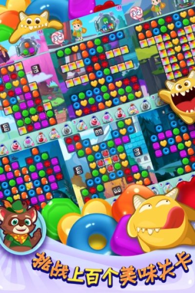 《糖果萌萌消》是由北京柠檬微趣科技自主研发的一款消除休闲游戏,该作在继承经典三消玩法的基础上添加了许多自主创新的玩法和元素。现在就和可爱的小女孩儿莉莉一起前往充满奇幻的糖果王国,对抗女巫大坏蛋、拯救浣熊小可怜,开始最甜蜜的消除冒险吧!