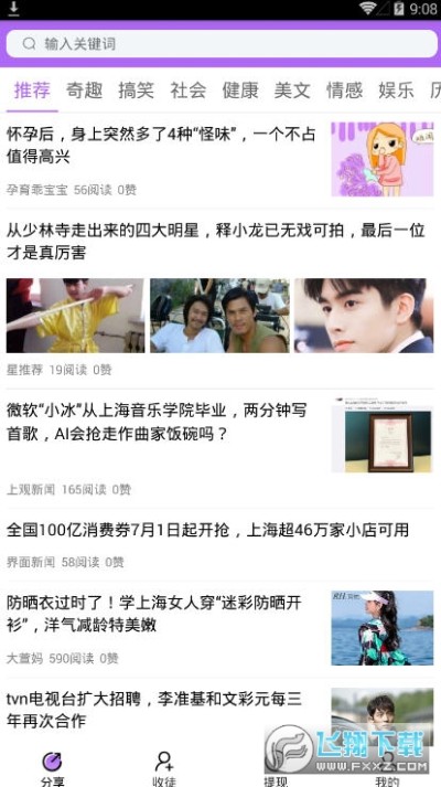 1、每日更新奇趣、搞笑、社会等内容丰富的文章资讯,内容绿色健康,分享不屏蔽;