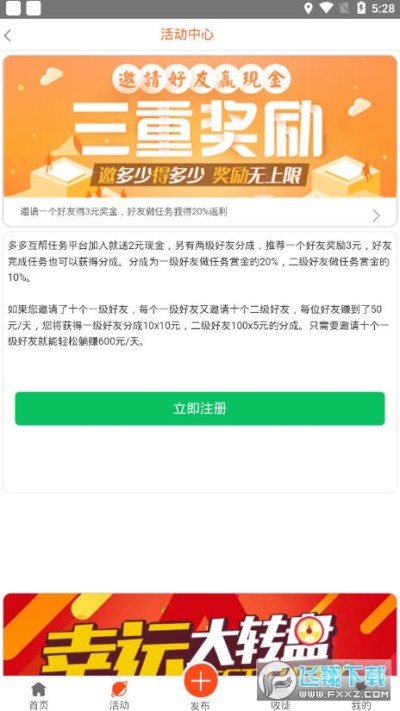1、任务奖励很多,有着较好的收入,新用户注册有一元红包;