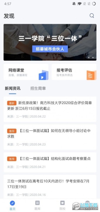三一学院是一款帮助高中学生学习课程知识、更高效的备考的学习app。在这里,有全科的课程学习资料,语数英、政史地、理化生等等,全部包含。这款app还能帮助你了解各大高校的近年招生情况和要求,更有针对性的备考。笔试课程、面试课程,这里全都包括,快来看看吧!