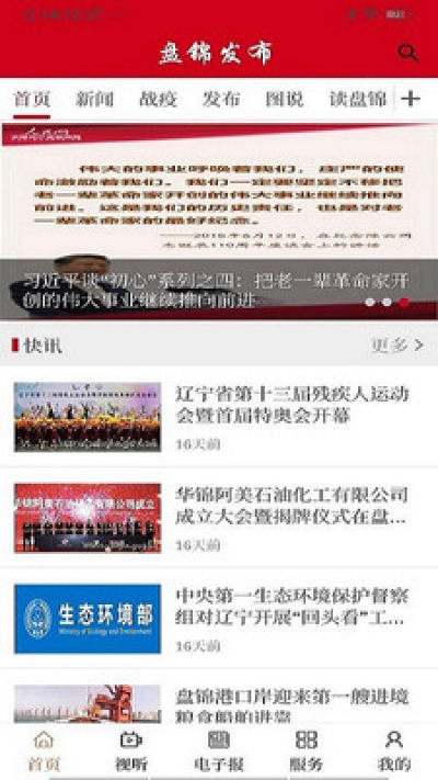 《盘锦发布》APP简介 《盘锦发布》APP是盘锦市电视台官方APP,主要提供盘锦本地资讯、电视直播点播、广播、服务等内容。