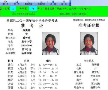 本软件适用于适用于准考证的批量打印制作。每张A4纸打印两个(有存根,供监考和存档用)或八个(无存根)准考证,支持照片打印。