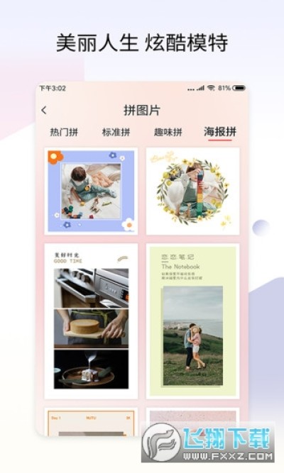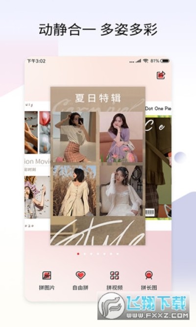 拼秀秀app是一款手机拼图软件,这款软件跟其他的拼图软件不一样的是拼秀秀app是一款动态拼图软件,支持视频模式的照片拼图哦,可以自己制作各种各样的拼图,还提供多种风格的模板,直接套用就可以了!