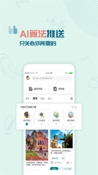 今日留学app是一款为各位准备留学的学子提供的关于高品质留学知识分享社区应用,这款今日留学app上可以提供非常多样的留学动态资讯,还能跟其他的留学伙伴一起交流讨论等等!