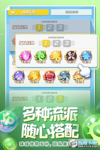 球球种类繁多,技能各有特色。获得重复的球球也不用担心,消耗重复的球球提升球球的等级,让你拥有更强的阵容!