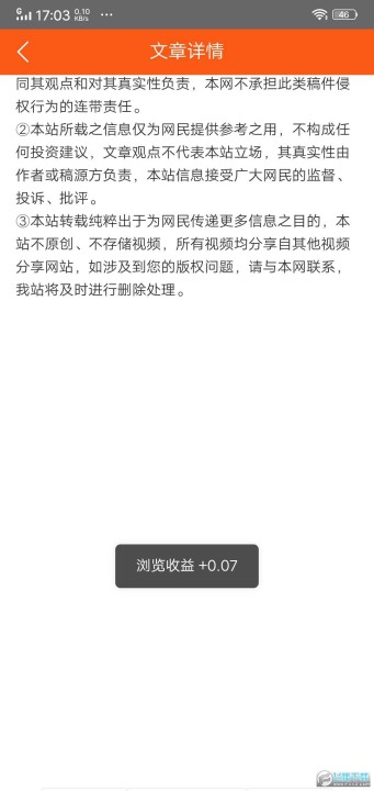 2、点击App内「开始阅读」按钮,可自动浏览文章赚钱,一次0.05-0.1元,每次耗时8秒
