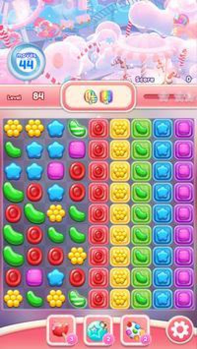 将3个或更多相同颜色和形状的糖果交换位置并连成直线。
