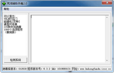 克鸿辅助杀毒是一款非常简单但是很实用的病毒查杀辅助软件,操作简单,只有一个按钮,绿色单文件,便于携带。