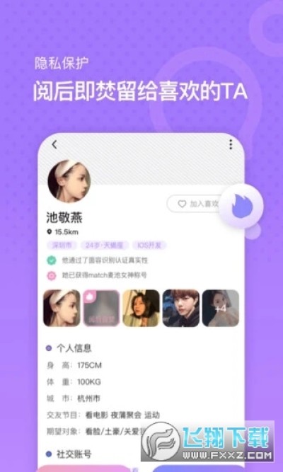 Match麦池app是一款手机社交平台,这款软件可以在线帮你提供各种社交服务,在Match麦池app上可以在线社交,还能跟其他的人打招呼,而且也能在线跟其他的对象约会等等!